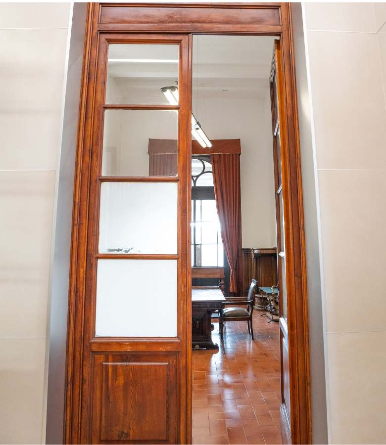 Even today, the national walnut wood paneling is present, with a fine inlay of the Savoy coat of arms in the central panel, made in the early 1900s by a workshop in Siena.