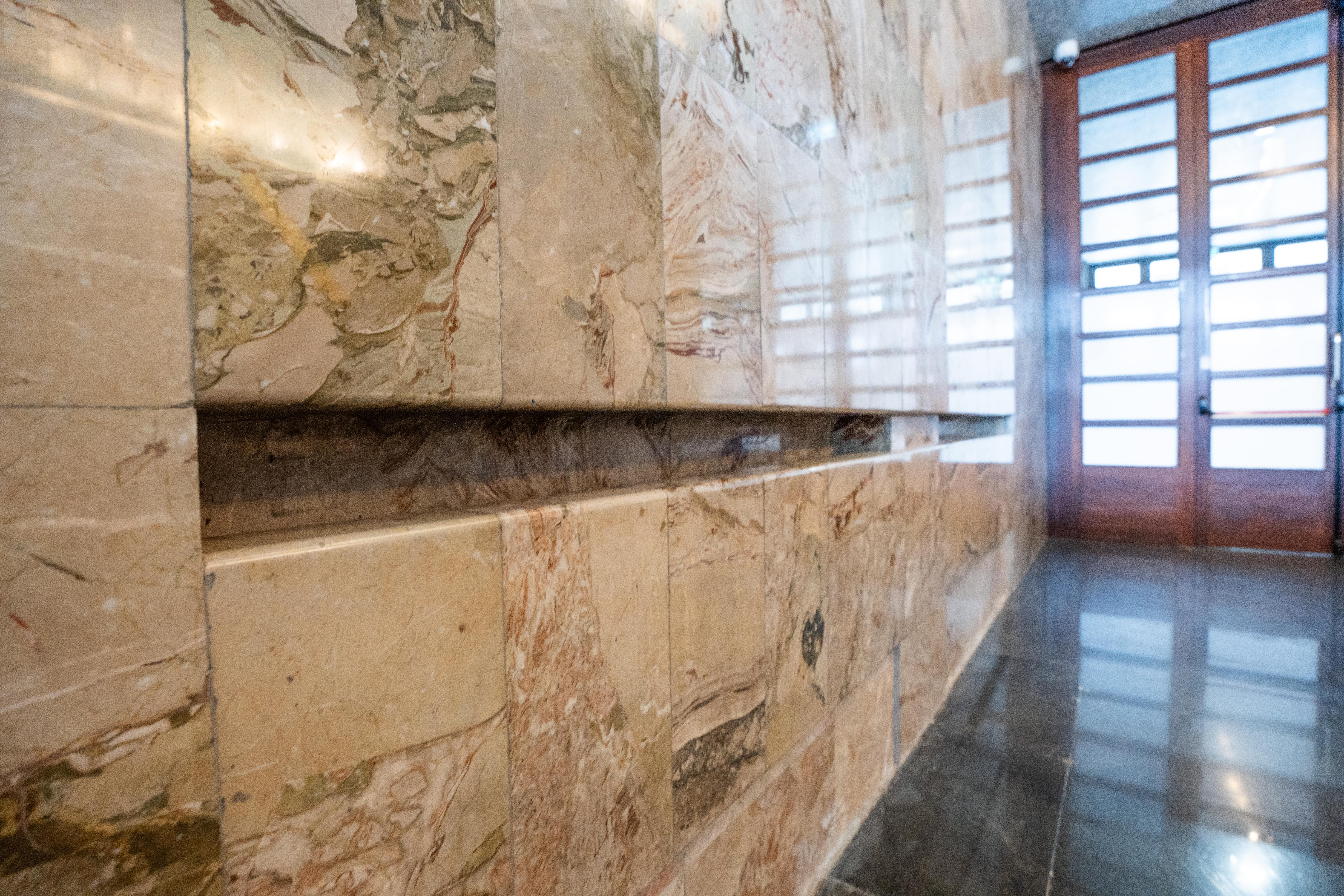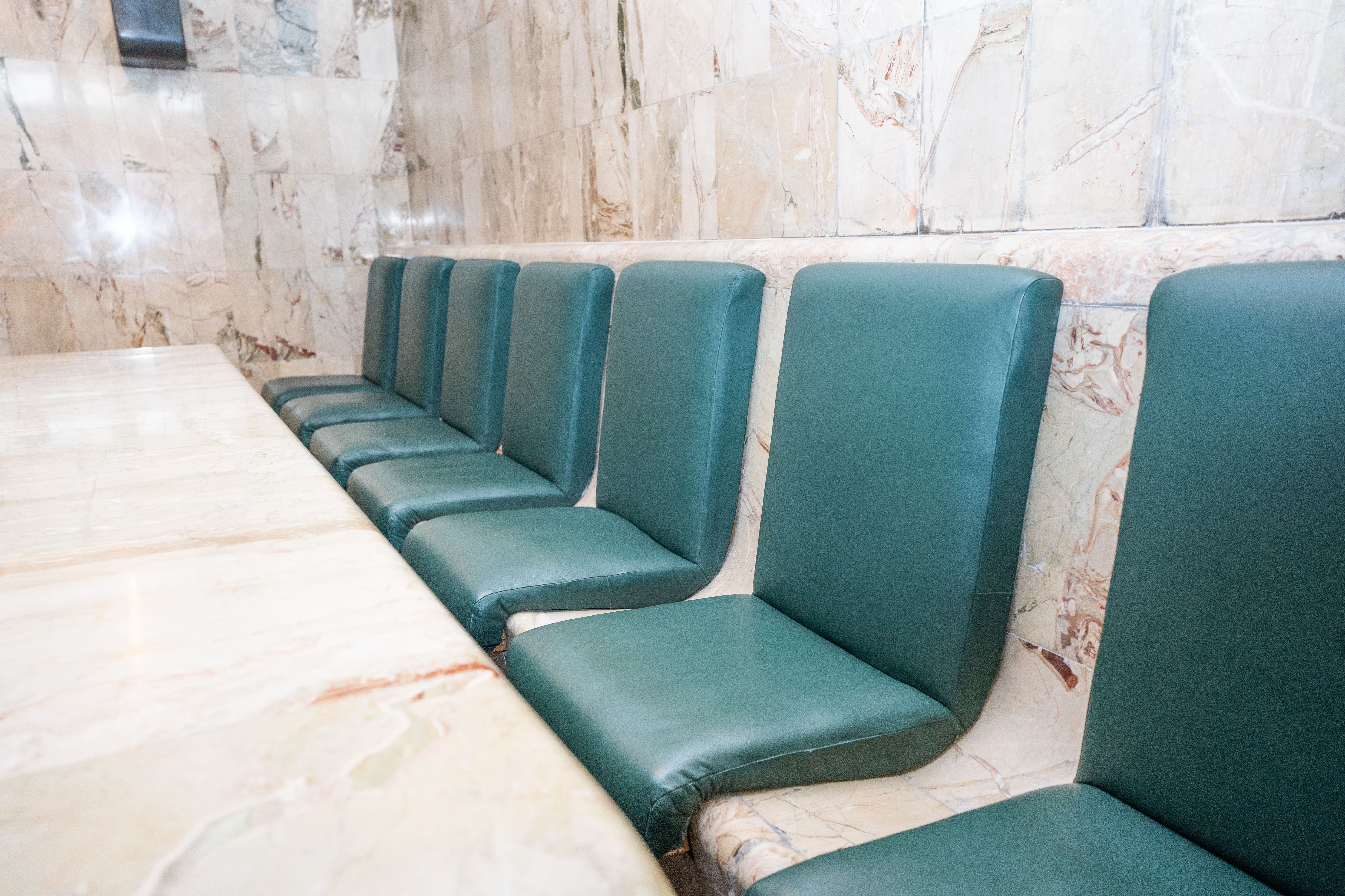 Peraluman aluminum, to the refined lighting fixtures. The seating in the waiting room is covered in