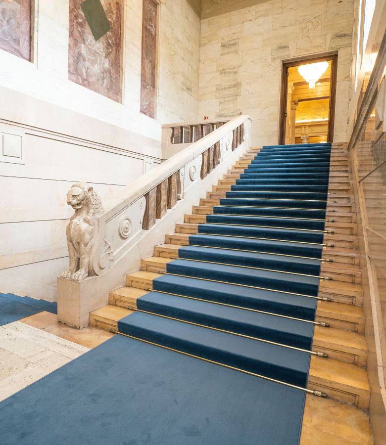Progettato dall’architetto Ulisse Stacchini nel 1931 come sala d’attesa dei Savoia, il Padiglione reale della stazione di Milano Centrale si divide su due piani, offrendo un doppio accesso: la Sala delle armi al piano terra permette l’ingresso da Piazza Luigi di Savoia, mentre la Sala reale è collocata sulla banchina della stazione, garantendo quindi un rapido incarrozzamento sul Treno Reale.