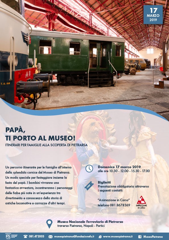 Itinerari per famiglie alla scoperta di Pietrarsa. Un modo speciale per festeggiare insieme la festa del papà. I bambini vivranno una fantastica avventura, incontreranno i personaggi delle fiabe più note in un’esperienza tra divertimento e conoscenza della storia di antiche locomotive e carrozze d’altri tempi.