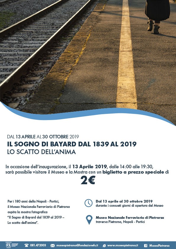 Per i 180 anni della Napoli - Portici, il Museo Nazionale Ferroviario di Pietrarsa ospita la mostra fotografica “Il Sogno di Bayard dal 1839 al 2019 – Lo scatto dell’anima”.