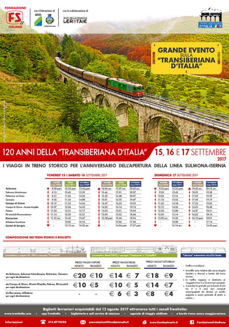Il 15, 16 e 17 settembre 2017 per l'anniversario dei 120 anni della ferrovia Sulmona - Isernia
