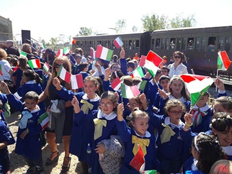 Sventolio di bandierine agitate da schiere di bambini hanno accolto, sabato 23 settembre, il ritorno del treno alla stazione di Pietrelcina. Una grande festa a cui hanno preso parte, oltre ai 360 passeggeri del treno storico organizzato per visitare i luoghi di Padre Pio, oltre 400 cittadini che non hanno perso l'occasione di ammirare il convoglio d’epoca che ha segnato la riapertura della linea Benevento - Bosco Redole, ripristinata grazie all'intervento di Rete Ferroviaria Italiana e della Regione Campania che ha programmato un investimento di 20 milioni di euro per il suo recupero a fini turistici.