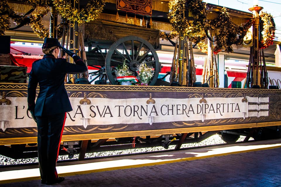Il “Treno della Memoria”, promosso e organizzato dal Ministero della Difesa in collaborazione con il Gruppo Ferrovie dello Stato e Fondazione FS, ha rappresentato la prosecuzione del viaggio organizzato nel 2021 per celebrare il centenario della traslazione della salma del Milite Ignoto da Aquileia a Roma. Il viaggio di quest’anno, su un nuovo itinerario, ha avuto lo scopo di coinvolgere anche le città che non erano state toccate dal percorso compiuto nel 2021.
